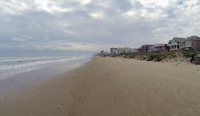 Pretty good construction - it survived a change of the tide. Not a lot of people on the beach today, and it was a beautiful day. Not clear, but partly cloudy, and in the upper 70s, very light breeze. After the walk, we had lunch at Clayton's - a bacon cheeseburger with a view of the beach and the sound of the water. Yep, this is definitely our new favorite beach bar.