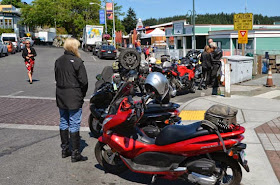 I have mentioned before that getting to the whales is like playing chess: you make the right moves, anticipate the other "player's" moves... and maybe you win.  We didn't work today - another day off, and we decided to take the scooters to Orcas Island again.  Joan wanted to walk around Eastsound; I was all for taking the scoots on some of the fun roads there.