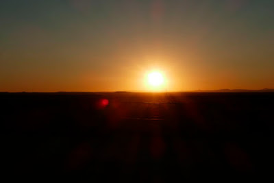 What's that? The sun doesn't come up in the west? We had to go a short distance east on the service road to get to the highway. Heading west...