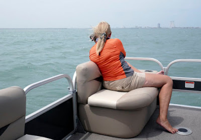 So, each day out on the boat now may be the last for this season. It was another warm, windy day here... the temps were in the upper 80s the wind around 20 mph, without much variation on the hourly forecast. We headed out around 1:30, hoping to see some dolphins, but mainly looking forward to some time on the water.