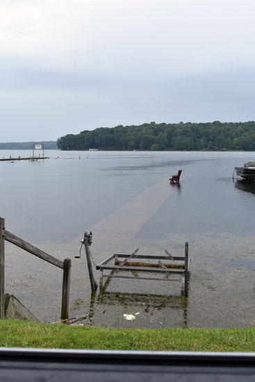 The road right by the bay was closed except for "local traffic." We went beyond that sign to see if we could find a place to eat. There were pumps on the side of the street, pumping water back into the bay (and Lake Ontario), and sandbags all around. A couple restaurants were open, and Joan thought it would be a good idea to patronize them. Not much of a crowd inside Captain Jack's Goodtime Tavern, but the food was good. It was clear in listening to conversations that this area is hurting.