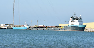 Moving towards the turning basin, we saw several Off-shore Supply Vessels. The Terrel Tide (making the local crewboat Emmanuel look small)...