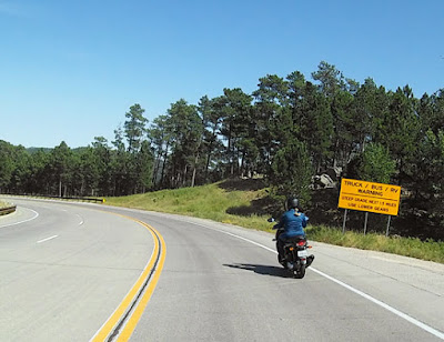 I had mentioned in a previous post "Mellow Time," and how the touristing families have gone home... yep, they have been replaced by older couples driving slow. I had also mentioned how the roads are especially clogged during the Sturgis Rally... yep, but that traffic moves right along. No so with the cars on the road currently. But, we were patient and most of them eventually turn off at a scenic point or a pull-out; plus, we aren't on a schedule... but, it is more fun to ride the bikes at a brisk pace.