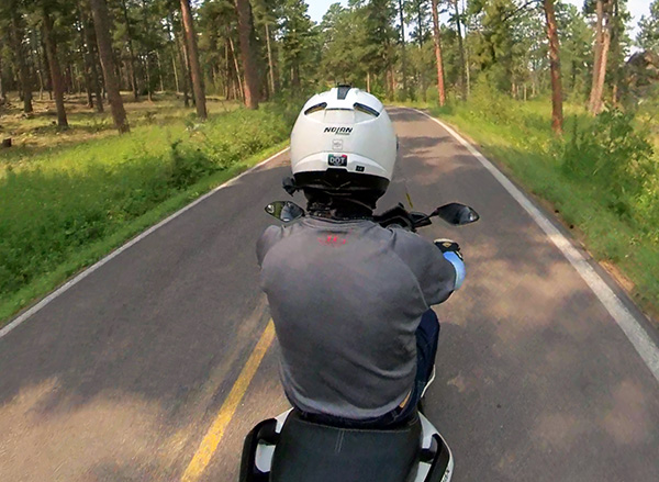 A breezy day here in the Black Hills, and cool enough (in the 70s) that we could get out on the scoots in our jackets. I was pumped: Joan and I haven't ridden together in over a week. Oh, I've been out solo, but I like riding together.