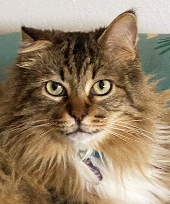 Speaking of that handsome boy in the photo above, Rufus and I were out walking for about a half hour this evening. Sometimes I can get a few exercises in while he looks for the right blade of grass to munch; tonight, he was all about the walking. In that time we were out, two individuals and one couple out walking commented on "that beautiful cat." But, wait - there's more: two golf carts (a couple in each) and two different cars stopped to roll down their window and comment. One guy said, "That is the best looking cat I've ever seen! Bless you for teaching him to walk on a leash!"
