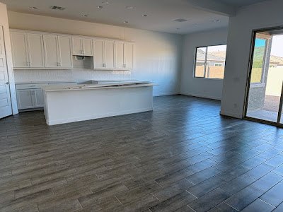 The My Pillow guy from the TV commercials? No, but thanks for asking. Steph and Dan sent us the weekly progress photos on the new house... the big difference this week: the tile flooring. We were each able to pick out what we wanted for flooring for the separate sides of the house. In this shot, Steph and Dan are standing in the adjoining door between their side and ours...